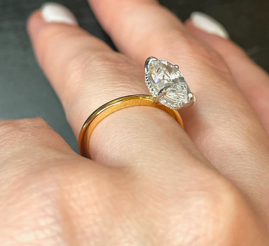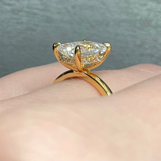 2CT Yellow Gold Oval Travel Engagement Ring With Hidden Halo